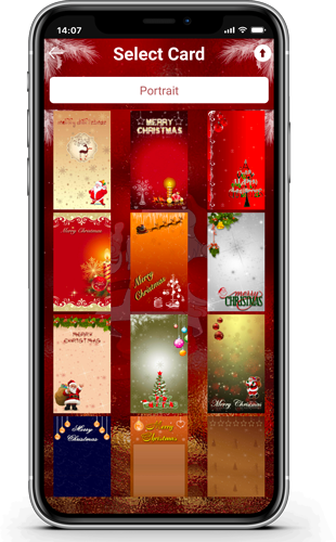 - Select background card from 50+ existing cards or upload from gallery or camera.